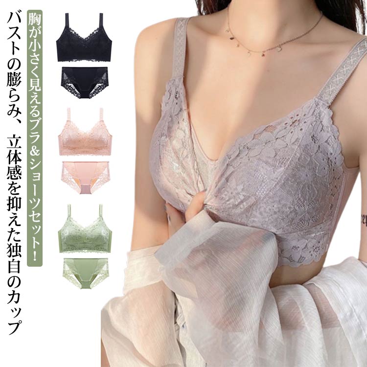 胸が小さく見えるブラ 胸を小さく見せるブラジャー レディース 総レース ブラジャーインナー 下着 ナイトウェア レディース インナー 下着 ランジェリー セット ブラジャー&ショーツ