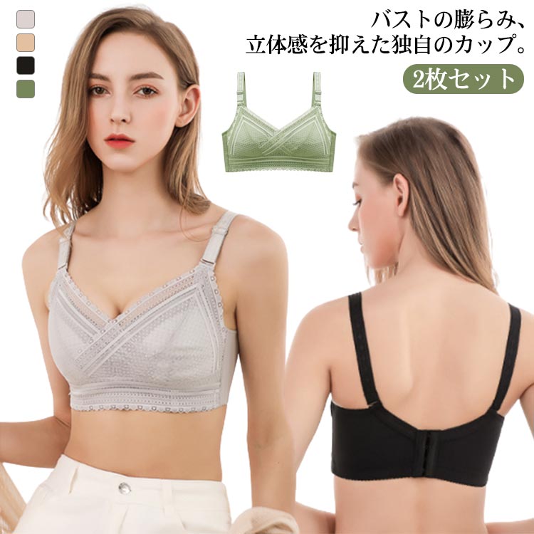 総レース ブラジャー 胸が小さく見えるブラ 胸を小さく見せるブラジャー ノンワイヤーブラジャー 薄手 着痩せブラ 育乳ブラジャー