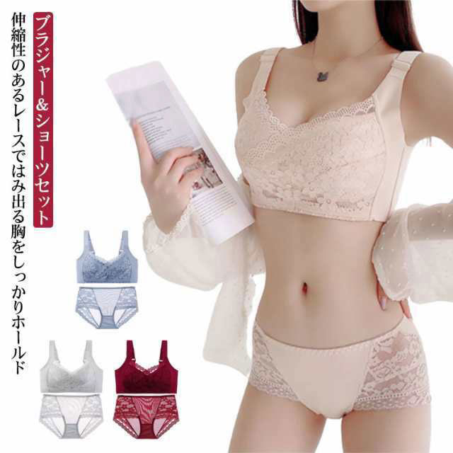 総レースブラ ショーツ セット ノンワイヤーブラジャー 谷間 育乳ブラ ナイトブラ 補正 下着 盛りブラ バスト 寄せ 美胸 盛れるブラ バストアップ 小胸