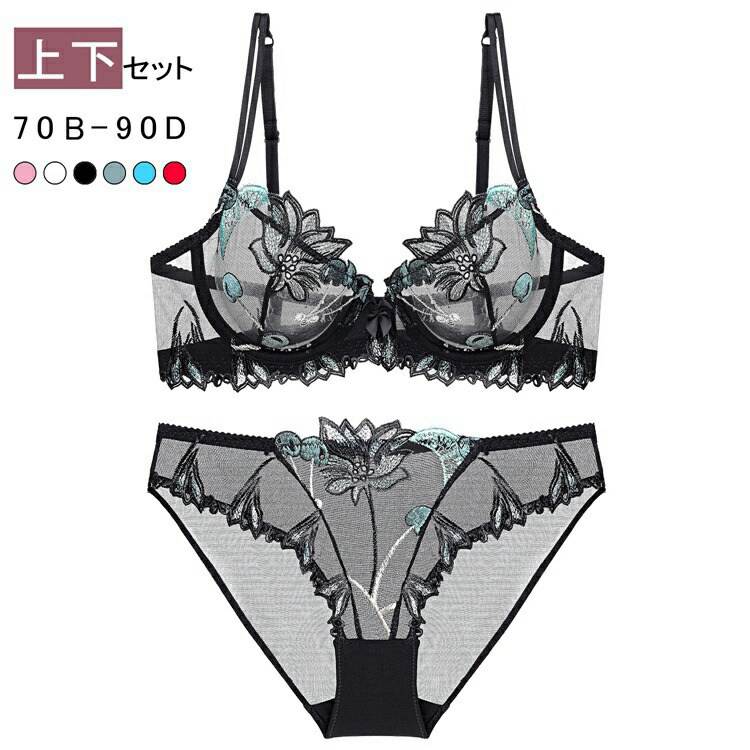 ブラジャー ショーツセット セクシー シースルー ランジェリー 総レース 花柄刺繍インナー 下着 ナイトウェア レディース インナー 下着 ランジェリー セット ブラジャー&ショーツ