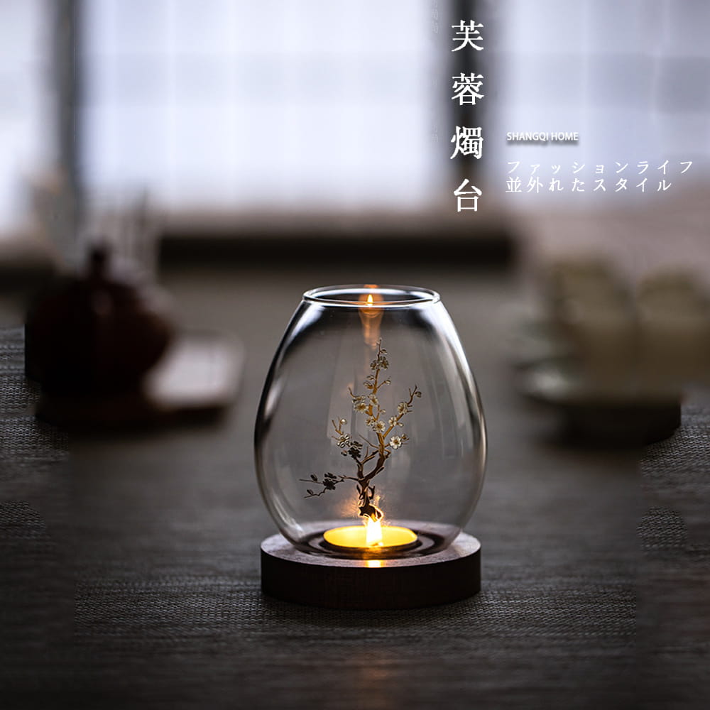 キャンドルスタンド 北欧風 ガラス ウッドキャンドルスタンド おしゃれ 木製台付 ホルダー ロウソク立て 韓国スタイル ろうそく立て