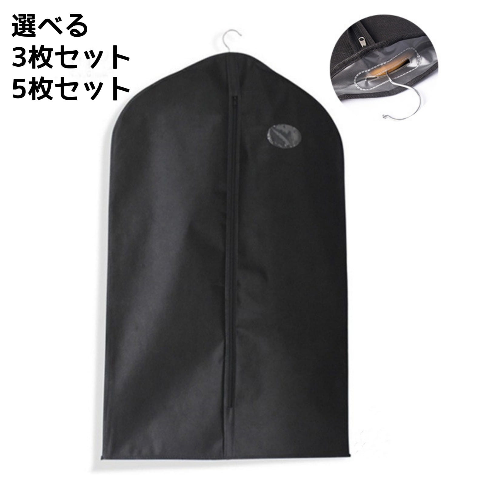 洋服カバー スーツカバー 衣類カバー 90×60 黒 厚手 不織布 ファスナー 透明窓付き ガーメントバッグ テーラーバッグ スーツ持ち運び 収納 衣装カバー セット 通気性 シワ防止 ほこり