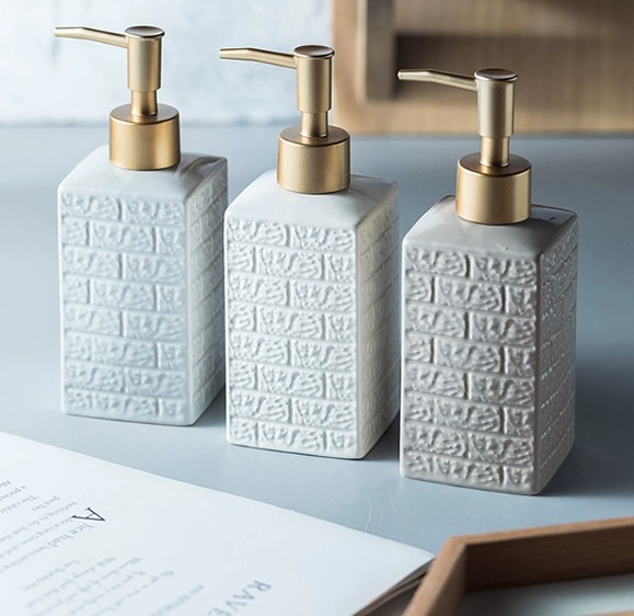 詰め替えボトルホルダー白ホワイトゴールド花柄レトロ韓国雑貨インテリア北欧おしゃれ洗面所ハンドソープ容器収納大容量ソープ陶器ポンプソープボトル筒形ソープディスペンサーかわいいフラワーアンティーク可愛い