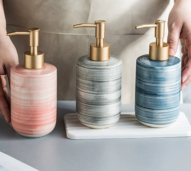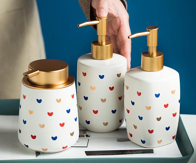 3デザインハートカラフル詰め替えボトルホルダーレトロ韓国雑貨インテリア北欧おしゃれ洗面所ハンドソープ容器収納大容量ソープポンプソープボトルかわいい陶器