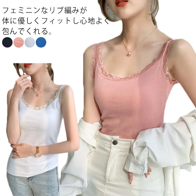 レース縁取り シームレスインナー レディース クールインナー ネック 肌着 レース レースキャミ 下着 インナー