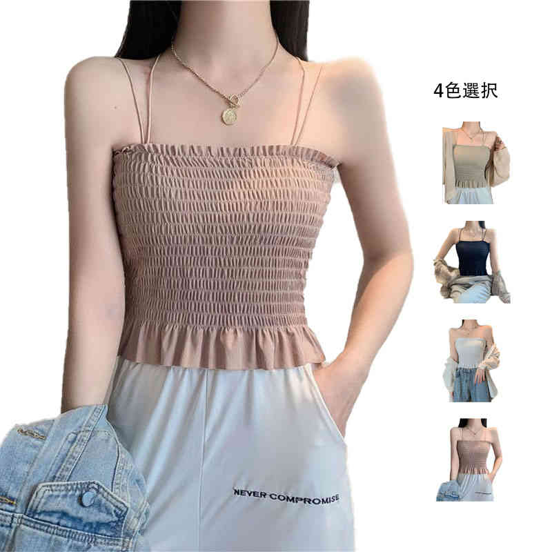 プリーツキャミソール ショート丈 セクシー おしゃれ フリルキャミソール プリーツ インナーキャミソール