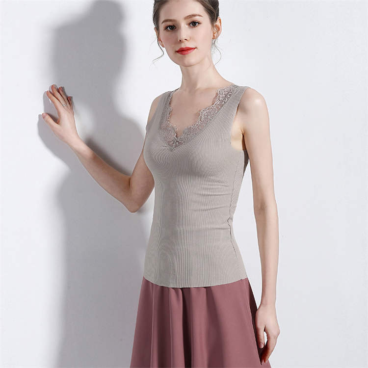 レース縁取り シームレスインナー レディース クールインナー Vネック 肌着 レース レースキャミ 下着 インナー