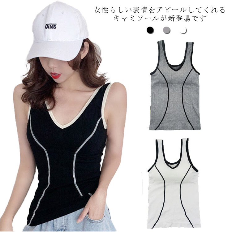 ブラトップ パット付き キャミソール ノーワイヤー スポーツブラ レディース 下着 ストレッチ バストアップ お洒落 吸汗 通気性 Vネック 一体式