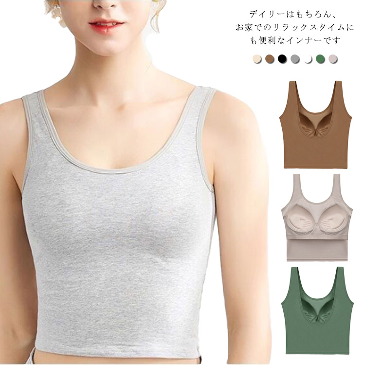 ブラトップ パット付き キャミソール ノーワイヤー スポーツブラ レディース 下着 ストレッチ バストアップ お洒落 吸汗 通気性 ネック 一体式