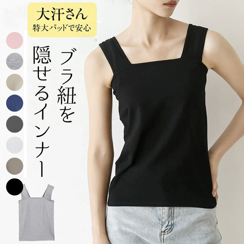 《SS 冷感タイプ登場 ブラ紐隠しインナー タンクトップ 重ね着 タンク キャミソール インナー レディース トップス ブラ紐を隠せるインナー