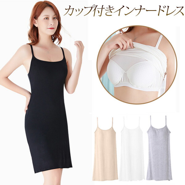 インナードレス ブラカップ付き ペチコート ワンピース キャミワンピ ロング スリップ 透け防止 ブラック ホワイト ベージュ グレー