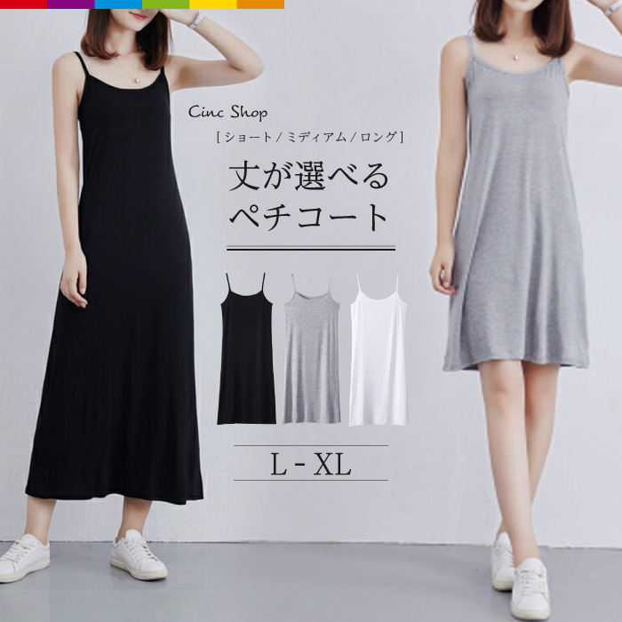 ペチコート ワンピース キャミソール ノースリーブ レディース インナーワンピース 選べる丈 キャミワンピ 無地 ロング丈 インナー ホワイト グレー ブラック