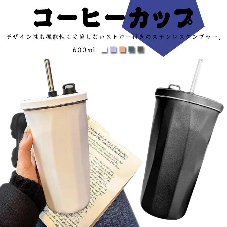 タンブラー 蓋つき 持ち運び 保温 保冷 伸縮ストロー付き ステンレス製 真空断熱 女性 レディース こぼれない おしゃれ 可愛い 水筒 結露しない 600ml