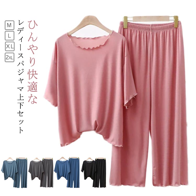 冷感パジャマ 上下セット ハーフパンツ 涼しい 可愛い 部屋着 半袖 M~2XLインナー 下着 ナイトウェア レディース ナイトウェア ルームウェア パジャマ