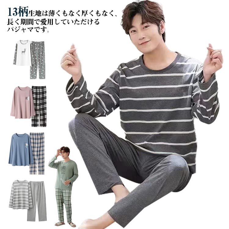 パジャマ メンズ 秋用 長袖 ルームウェア 綿 男性用 寝巻き 上下セット 部屋着 長袖Tシャツ ズボン 男性 男性パジャマ