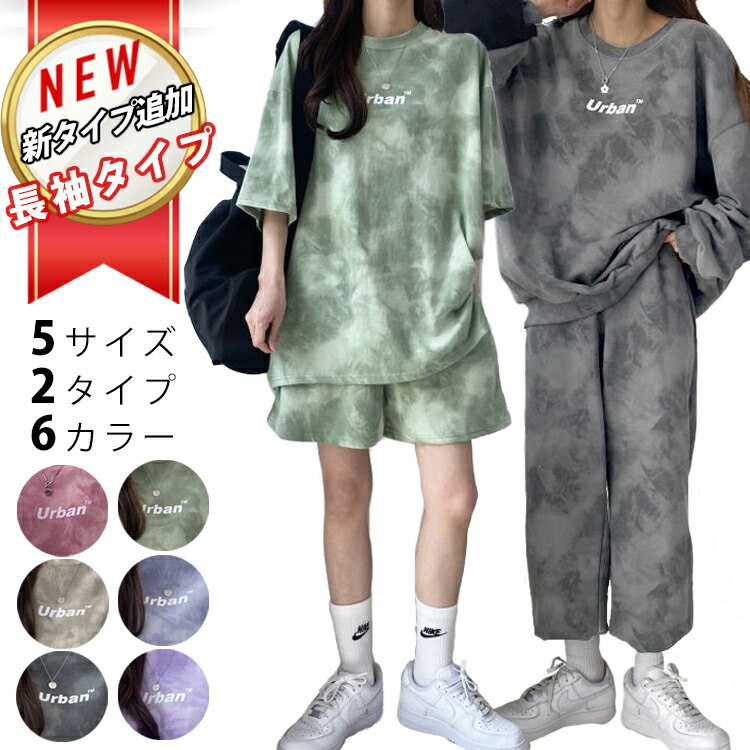 2タイプ タイダイ柄 ルームウェア セットアップ 上下セット 半袖 長袖 半ズボン 長ズボン カジュアル 大きいサイズ ワンマイルウェア 韓国 お洒落 普段着