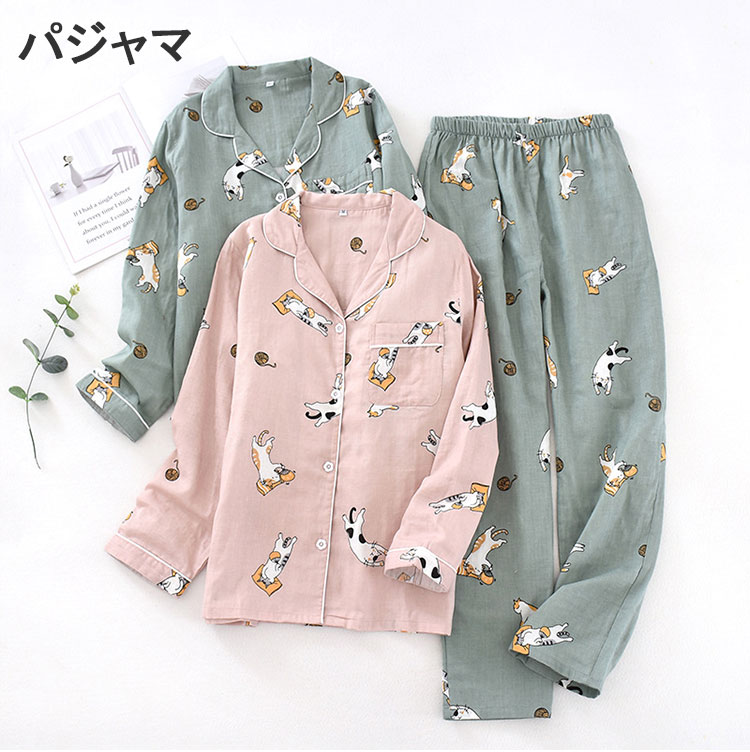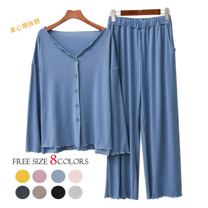 ルームウェア パジャマ レディース 長袖 上下セット 春秋 トップス パンツ 部屋着 セットアップ ゆったり 寝巻き