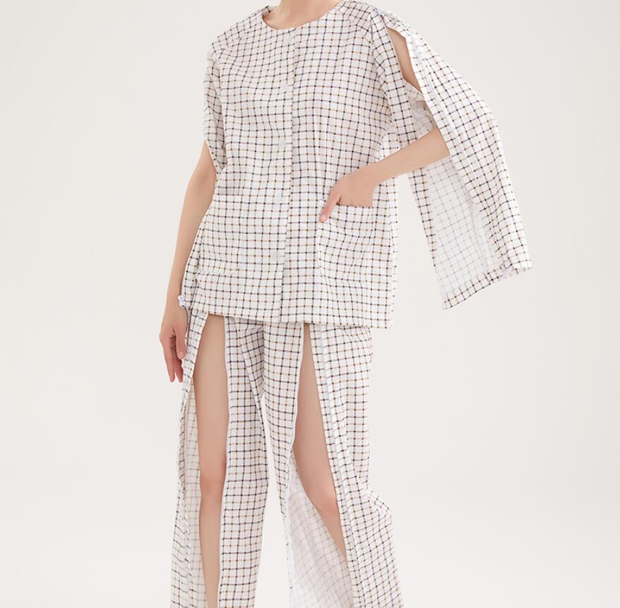 全綿介護用 パジャマ全開長袖ファスナー式 マジックテープ式コットンパジャマレディースメンズ女性向け 男性向け両脇全開パンツ両開き婦人用着替えやすいコットン100%綿 通院 診察 着脱不要高齢者