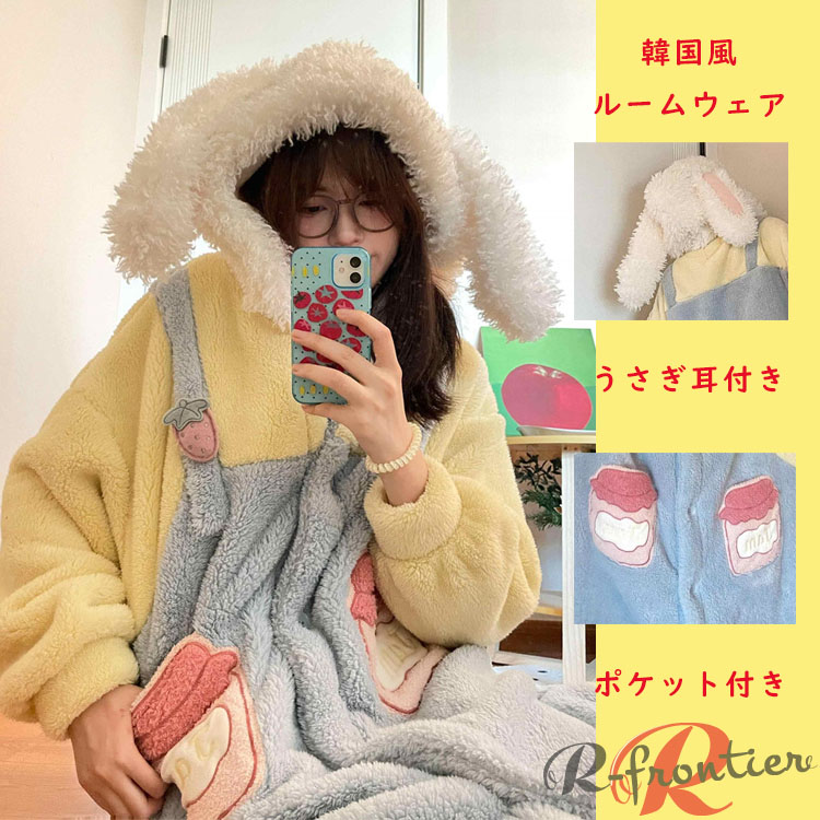 着ぐるみ パジャマ 大人用 可愛い モコモコ パジャマ ルームウェア レディース うさぎ耳 女子 動物 長袖 修学旅行 中学生 ワンピース 秋冬 学生用 イベント 高校生 娘 プレゼント