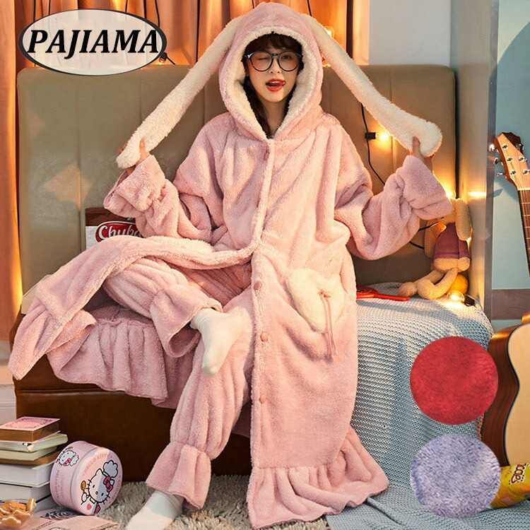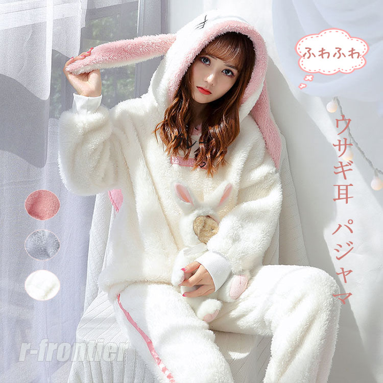 着ぐるみ パジャマ レディース ルームウェア モコモコ 兎 耳付き 動物 学生用 2点セット 秋冬 学生用 兎 お祭り イベント 屋着に 可愛い 中学生 高校生 娘 プレゼント
