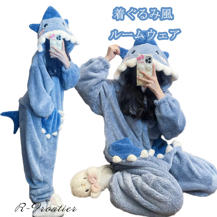 着ぐるみ パジャマ サメ モコモコ ルームウェア 可愛い レディース 秋 冬用 長袖 着る毛布 動物 オールインワン 学生用 春 暖かい 修学旅行 イベント 屋着に 中学生 高校生 娘 プレゼント