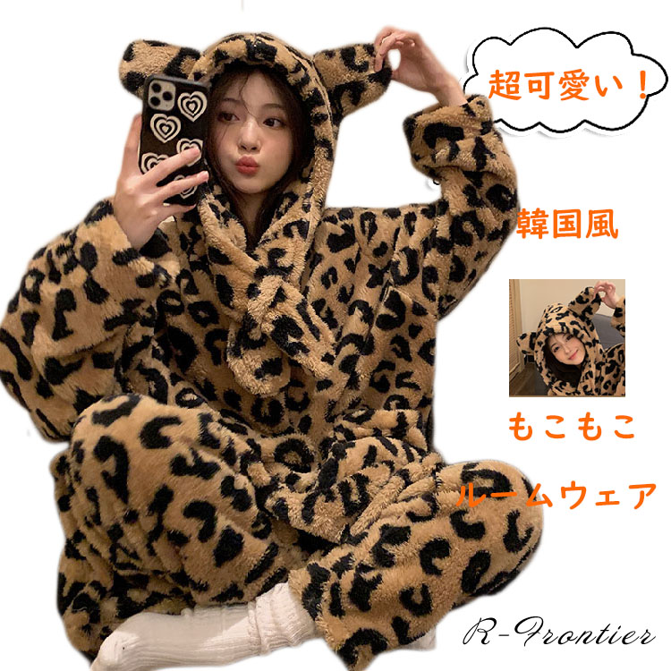 着ぐるみ パジャマ 可愛い レディース 冬用 パジャマ もこもこ ヒョウ柄 暖かい ワンピース ルームウェア 長袖 女子 動物 学生 修学旅行 クリスマス イベント 中学生 娘 プレゼント