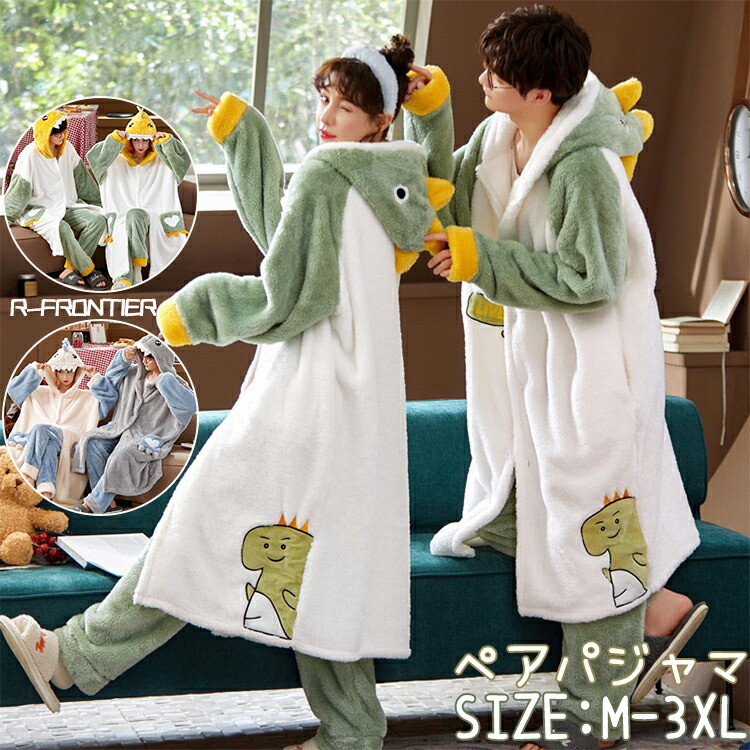 ガウン 部屋着 メンズ レディース 着ぐるみ パジャマ ナイトガウン 冬 暖かい ペアパジャマ もこもこ 長袖 ルームウェア メンズ 女子 動物 大人用 秋冬 部屋着 お揃い 夫婦 記念日