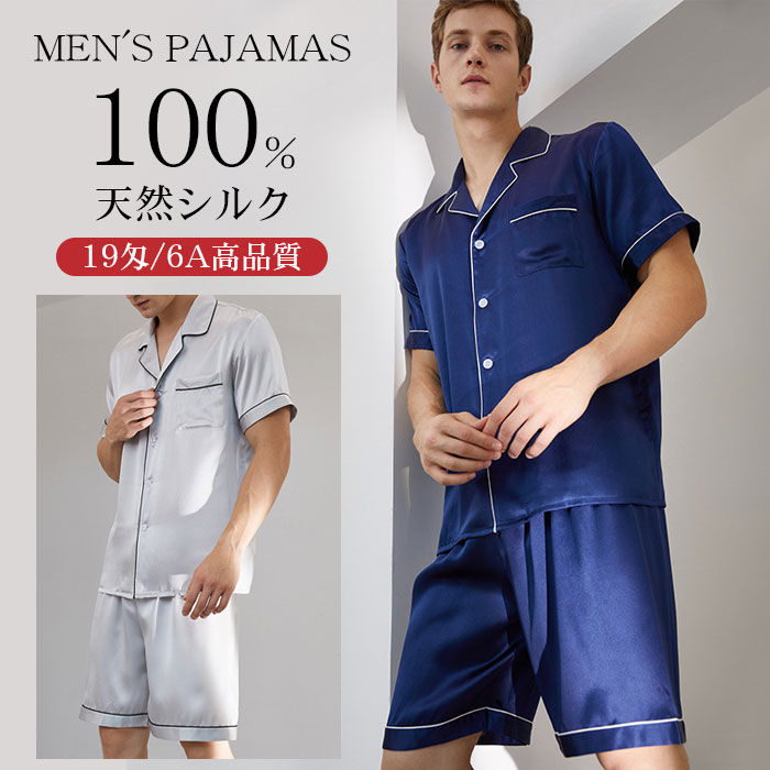 シルク パジャマ メンズ 長袖 大きいサイズ ルームウェア 無地 春 夏 上下セット シルク100 前開き 接触冷感 ロングパンツ 長ズボン セットアップ 部屋着 ナイトウェア シンプル おしゃれ メ