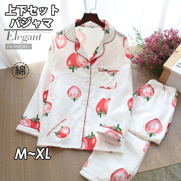 レディース セットアップ イチゴ柄 長袖 2枚セット 春 夏 2点セット コットン 綿 大人 プレゼント