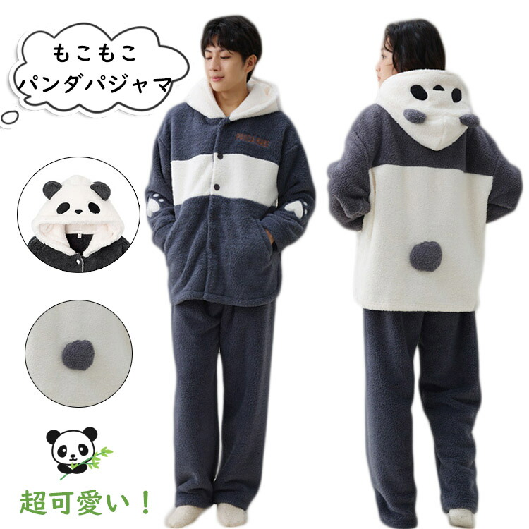 カップル ペア パジャマ 冬用 着ぐるみ パジャマ 可愛い もこもこ パンダ パジャマ メンズ レディース 長袖 ルームウェア 暖かい 上下セット 結婚祝い ギフト プレゼント 友達 おしゃれ