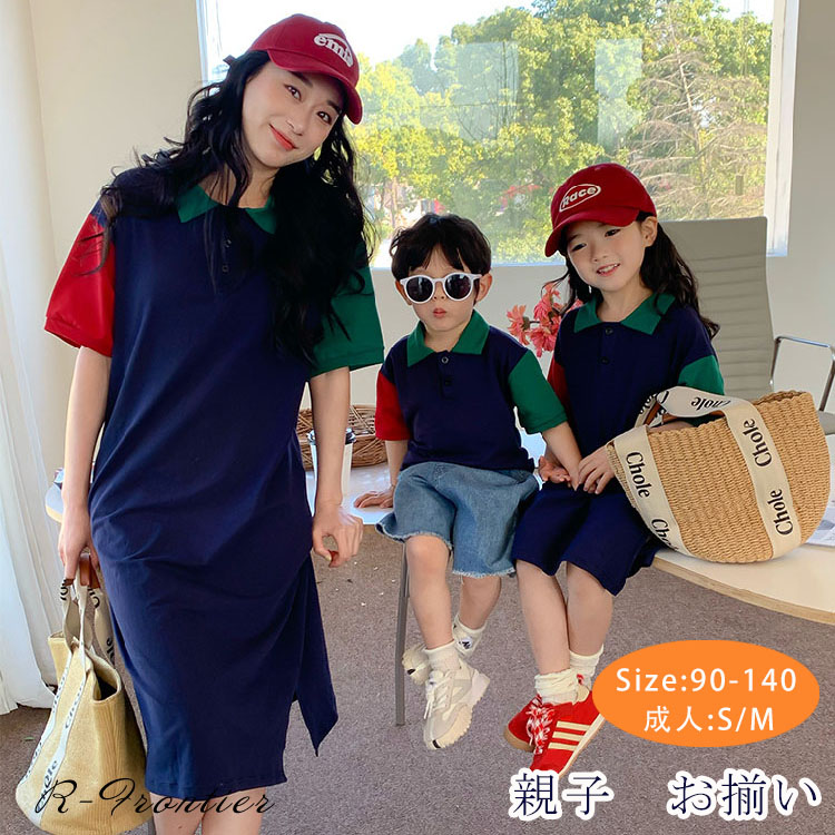親子コーデ ワンピース 母 息子 リンクコーデ 親子 セット 女の子 娘 ワンピース 男の子 親子コーデ シンプル 親子 ペアルック 半袖 家族 お揃い シャツ 子供服 兄弟