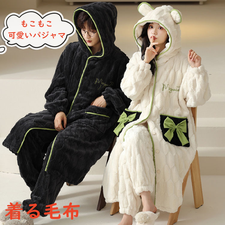 ペア パジャマ 冬 結婚祝い ギフト クリスマスプレゼント 友達 おしゃれ モコモコ レディース パジャマ メンズ ルームウェア 冬 着ぐるみ 部屋着 お揃い 夫婦 お揃い 記念日