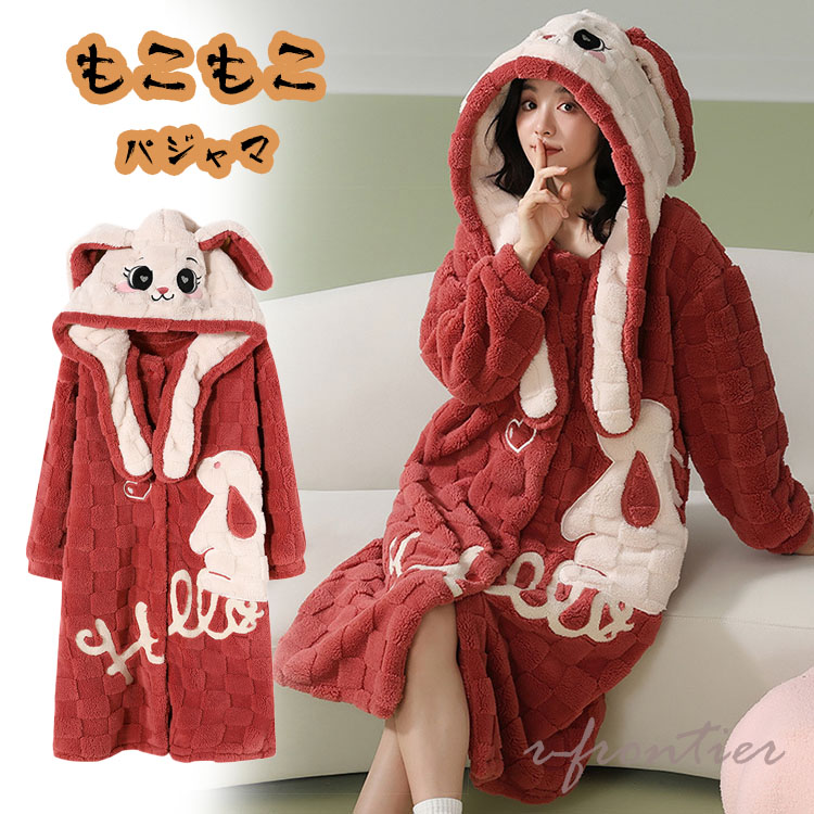 着ぐるみ パジャマ ルームウェア もこもこ ワンピース レディース ウサギ 女子 動物 大人用 長袖 秋冬 学生用 お祭り イベント 屋着に 可愛い 中学生 高校生 娘 プレゼント