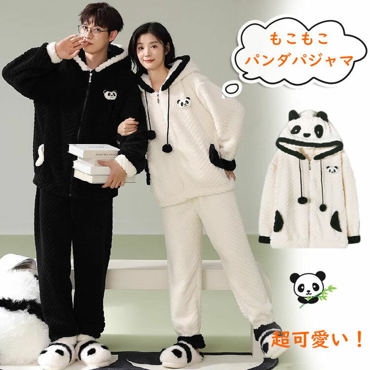 カップル ペアパジャマ 冬用 着ぐるみ パジャマ 可愛い もこもこ パンダ パジャマ レディース メンズ 長袖 ルームウェア 暖かい 上下セット 結婚祝い ギフト プレゼント 友達 おしゃれ
