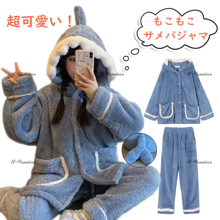 着ぐるみ パジャマ サメ 大人用 もこもこ ルームウェア 可愛い レディース サメ パジャマ 冬用 暖かい 女子 長袖 上下セット 秋冬 お祭り イベント 部屋着 中学生 高校生 娘 プレゼント