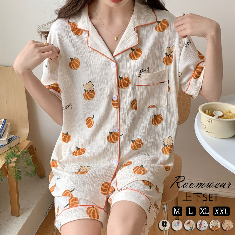 パジャマ ルームウェア レディース ルームウェア 綿 セットアップ かわいい プルオーバー 半袖 夏 上下セット 大人用 ルームウェア 可愛い 入院 パンツ 10色 20代30代40代50代 M L