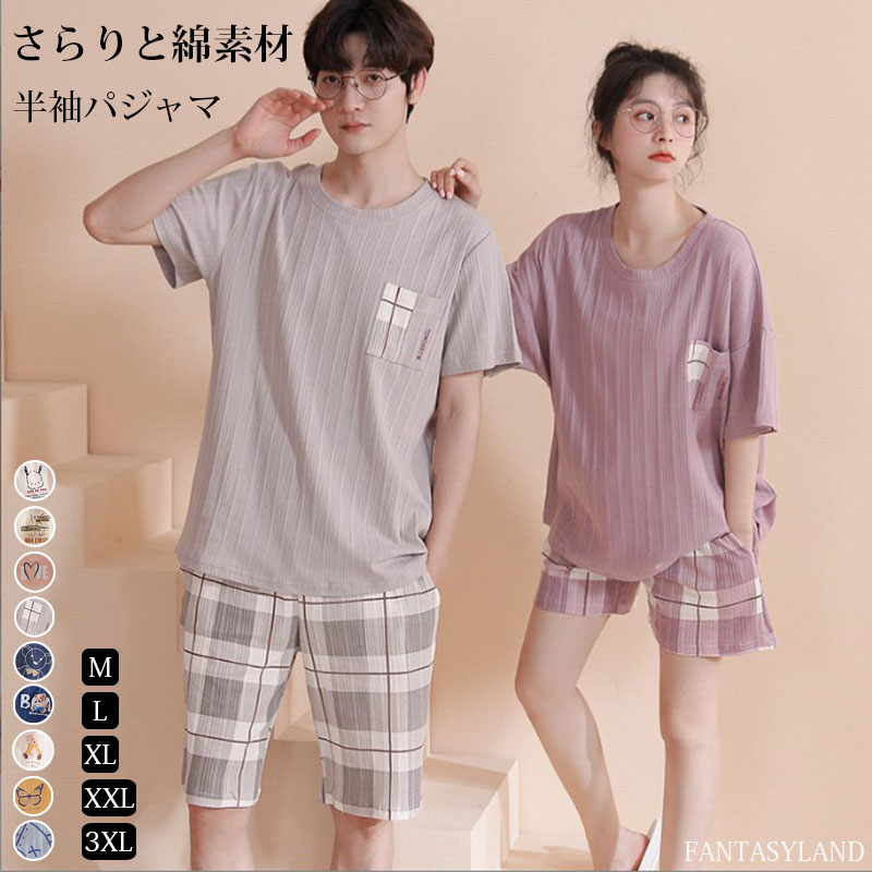 レディースカップル ペア ルームウェア メンズ 夏 半袖 ペアパジャマ セット カップル お祝い プレゼント カップルパジャマ 部屋着 コットン 恋人 夫婦 お揃い 記念日 ギフト 肌に優しい素材