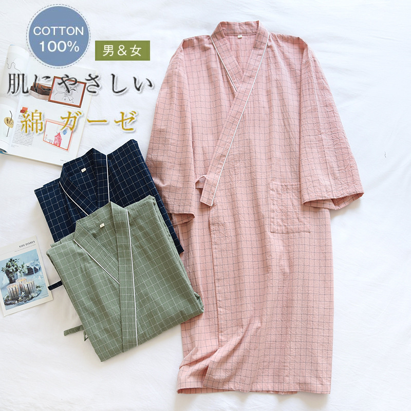 甚平 浴衣 パジャマ 和風 寝巻き 綿100% 和風パジャマ ルームウェア レディース メンズ カップル ペア パジャマ チエック柄 男女 夫婦 夏祭り 花火大会 綿 コットン ナイトウェア 可愛い