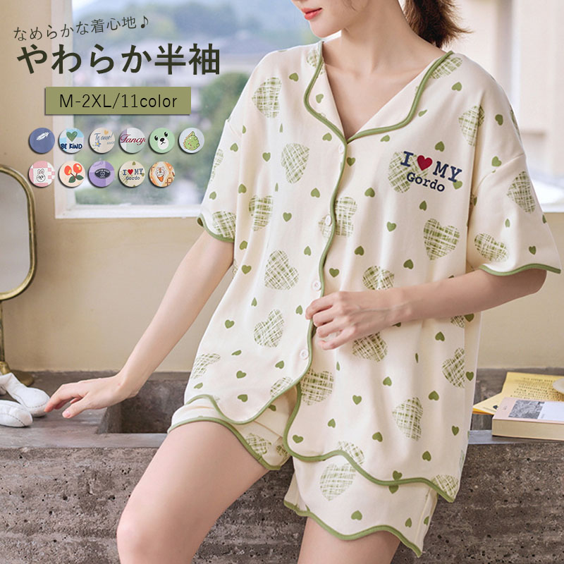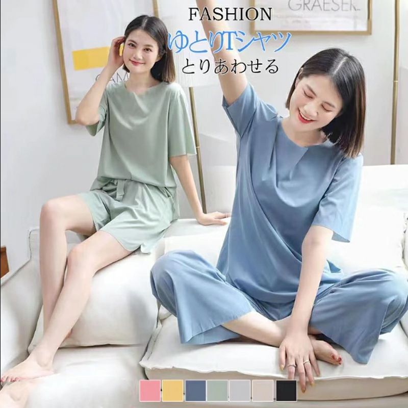 超キュートで可愛い、シンプルな無地パジャマ 着痩せシルエットで肌触りも良い素材の半袖上下セット インナー 下着 ナイトウェア レディース ナイトウェア ルームウェア パジャマ