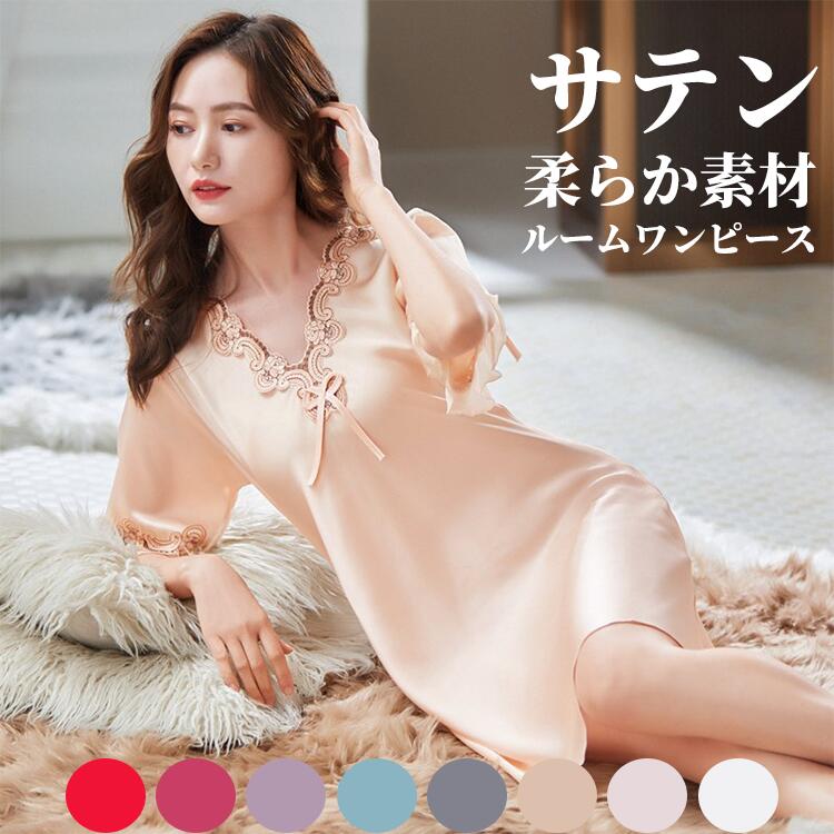 ネグリジェ 純白 ワンピース レディース ルームウェア サテン パジャマベビードール ロングネグリジェ シースルー セクシー ランジェリー レース 部屋着 ピンク ブラック おうち おうちコーデ 涼し