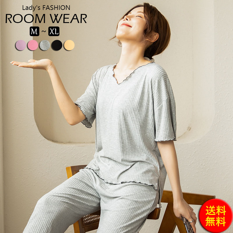 ルームウェア レディース リブ 薄手 ゆったり 夏 涼しい 半袖 長袖 Tシャツ ショートパンツ 短パン ロングパンツ 快適 パジャマ 伸縮性 通気性 ソフト 柔らかい 部屋着 ねまき 夏用 フェミニ
