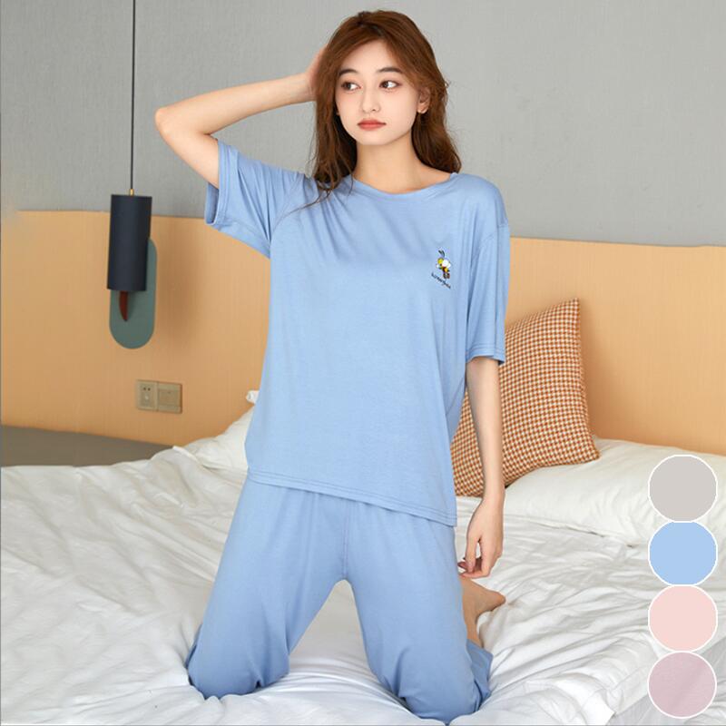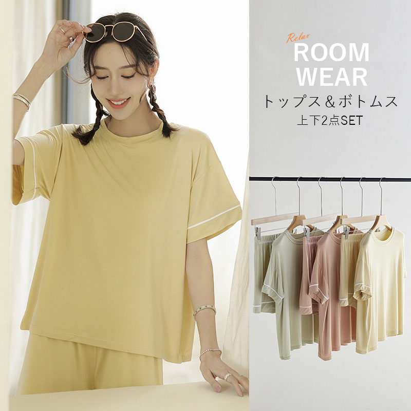 激安 超キュートで可愛い、シンプルな無地パジャマ 着痩せシルエットで肌触りも良い素材の半袖上下セット