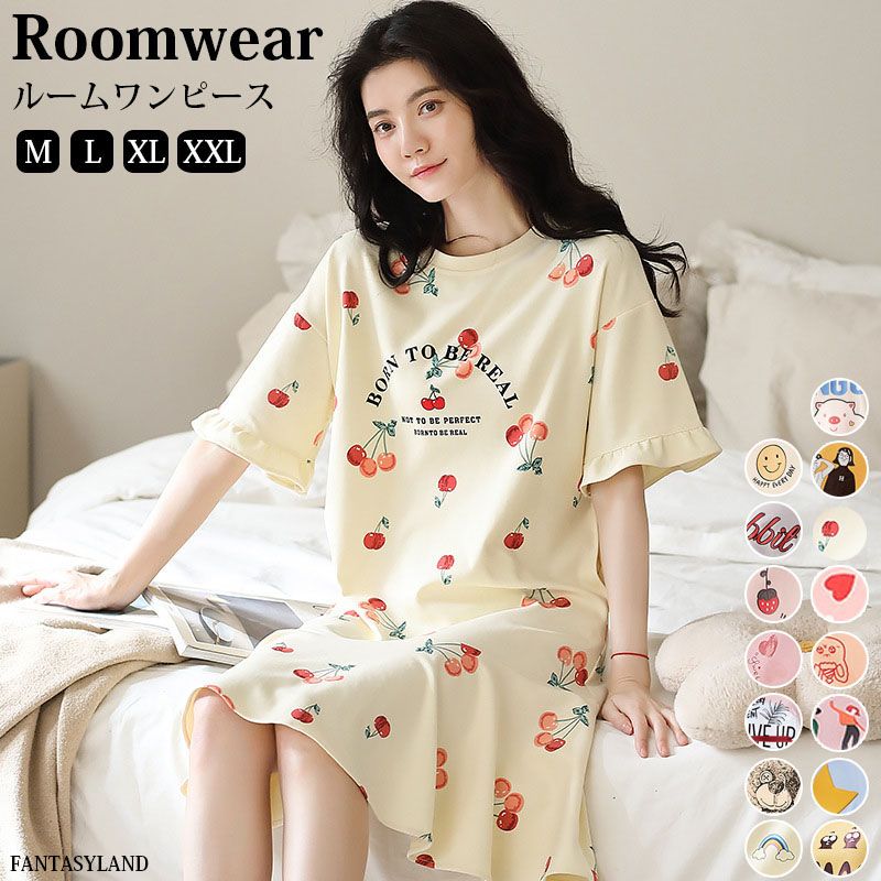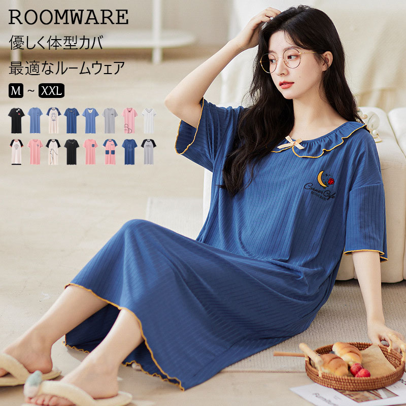 ルームウェア レディース 半袖 ワンピース ビッグtシャツ ルームワンピース ロングtシャツ ロンt かわいい パジャマ パッド付き 部屋着 可愛い 春夏秋 旅行用 M L 2L 3L