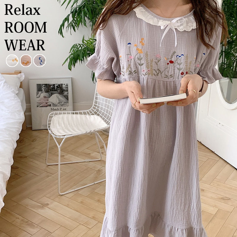 ルームウェア ロングワンピ レディース ワンピ室内&室外 春 夏 秋 半袖 可愛い ナイトウェア パジャマ 部屋着 かわいい ロング丈 リゾート ネック フレンチスリーブ 無地 高見え 大きいサイズ