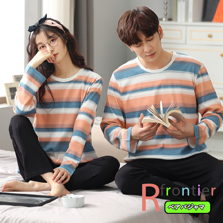 ペアパジャマ カップル ルームウェア 長袖 縞柄 ペア 結婚祝い ギフト プレゼント 友達 おしゃれ パジャマ メンズ ルームウェア 冬 着ぐるみ 部屋着 お揃い 夫婦 記念日