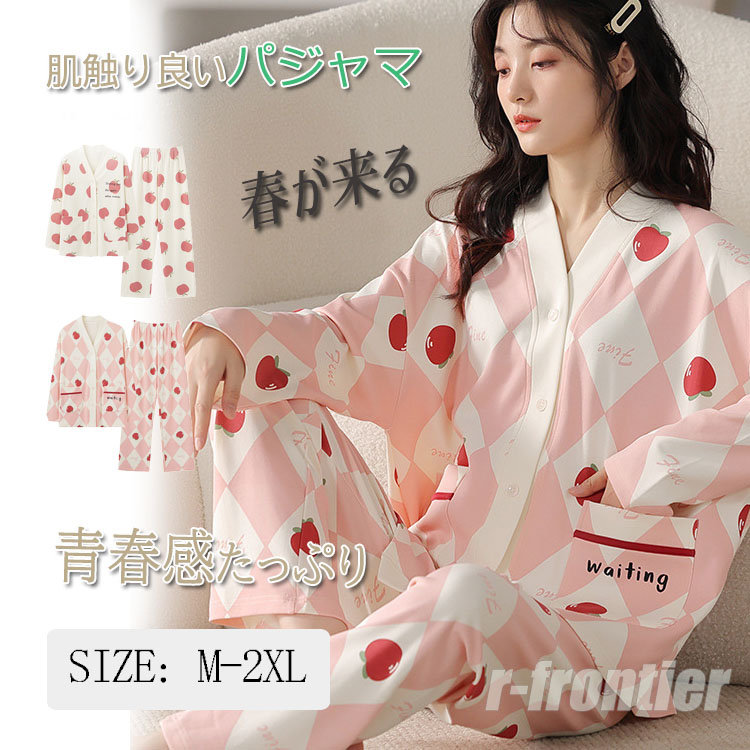 パジャマ レディース 春 長袖 綿 前開き ルームウェア 上下セット 部屋着 寝巻き 吸汗 可愛い パンダ柄 韓国風 出かける