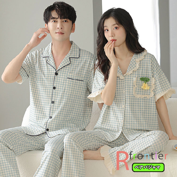 ペアパジャマ 半袖 チェック柄 可愛い 春秋 カップル ペア 結婚祝い プレゼント ペアパジャマ 友達 おしゃれ パジャマ メンズ ルームウェア 春 着ぐるみ 部屋着 お揃い 夫婦 記念日