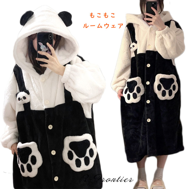 着ぐるみ パジャマ パンダ 冬用 レディース もこもこ パジャマ かわいい 暖かい クマ柄 ワンピース 動物 着る毛布 ルームウェア 長袖 女子 動物 学生 修学旅行 中学生 娘 プレゼント