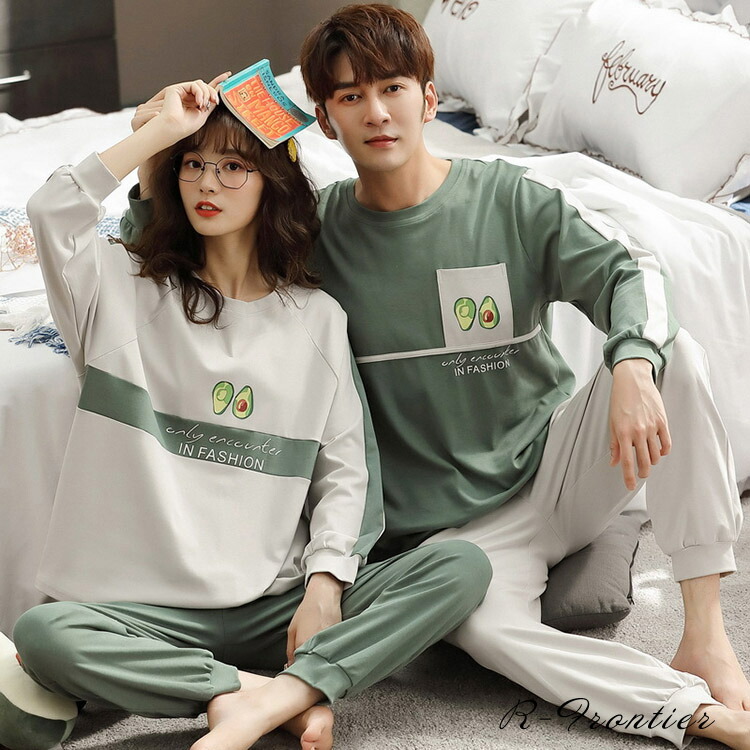 カップル ペアパジャマ ルームウェア 春夏 長袖 レディース メンズ パジャマ 可愛い 綿 ペアルック 結婚祝い プレゼント 友人 ルームウェア 贈り物 ペア 部屋着 上下セット 寝間き