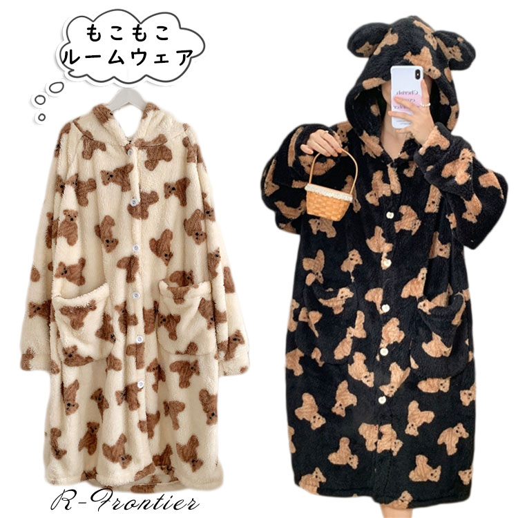着ぐるみ パジャマ かわいい 冬用 もこもこ パジャマ レディース 暖かい クマ柄 ワンピース 動物 パジャマ ルームウェア ガウン 長袖 女子 動物 学生 修学旅行 中学生 娘 プレゼント